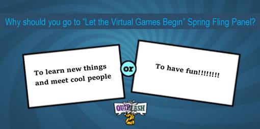 Amy Kleman, Chair of the Games & Gaming Interest Group, here to remind you to sign up for the Spring Fling Panel Let the Virtual Games Begin! It will be held on Wednesday, October 14 at 1pm on zoom.